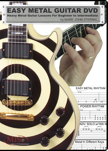 In Easy Metal Guitar DVD, expert guitar instructor Mark John Sternal starts you out with simple power chords, riffs, tricks and techniques that form the backbone of heavy metal guitar playing. Each lesson is introduced with thorough and descriptive instructions, followed by a slowed-down practice section to ensure that anyone, at any level, can play each exercise. Later, these exercises are combined to form complete metal songs. Each metal song and metal solo is presented at a slow, medium and fast tempo, so as you play along, you build up your metal guitar chops.Beats Per Minute (BPM) range from 50 BPM practice tempos, and progressively increase to high speed metal at 200 BPM. Read more...
